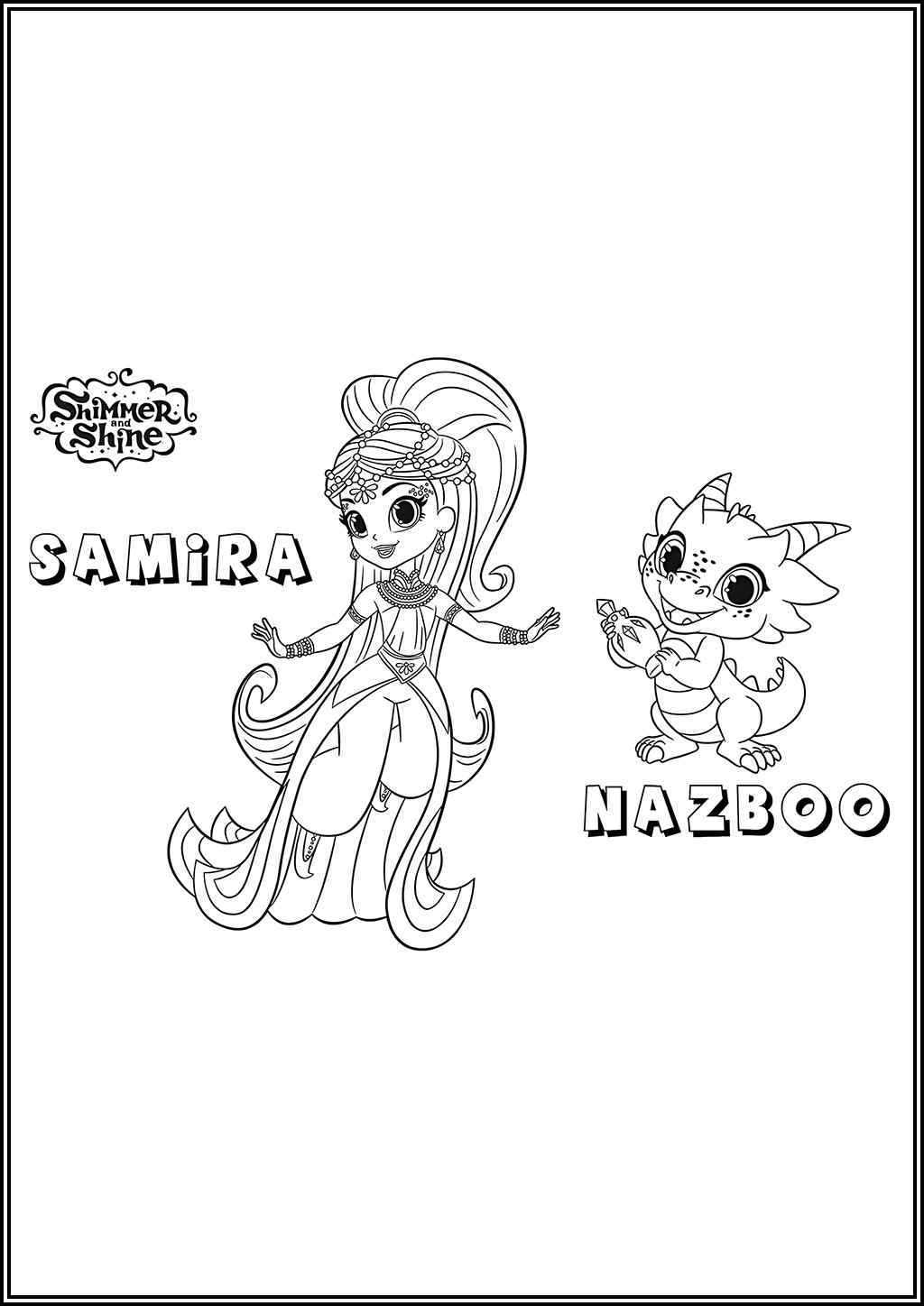Kolorowanki Shimmer i Shine do druku – odkryj magiczny świat dwóch uroczych dżinów i zanurz się w kolorowej krainie Zahramay Falls. Przygotowaliśmy dla Was bogatą kolekcję wzorów do kolorowania, które rozweselą każde dziecko i sprawią, że spędzi ono kreatywnie czas. Pobierz nasze darmowe kolorowanki i ciesz się artystyczną zabawą razem z Shimmer, Shine i ich przyjaciółmi!